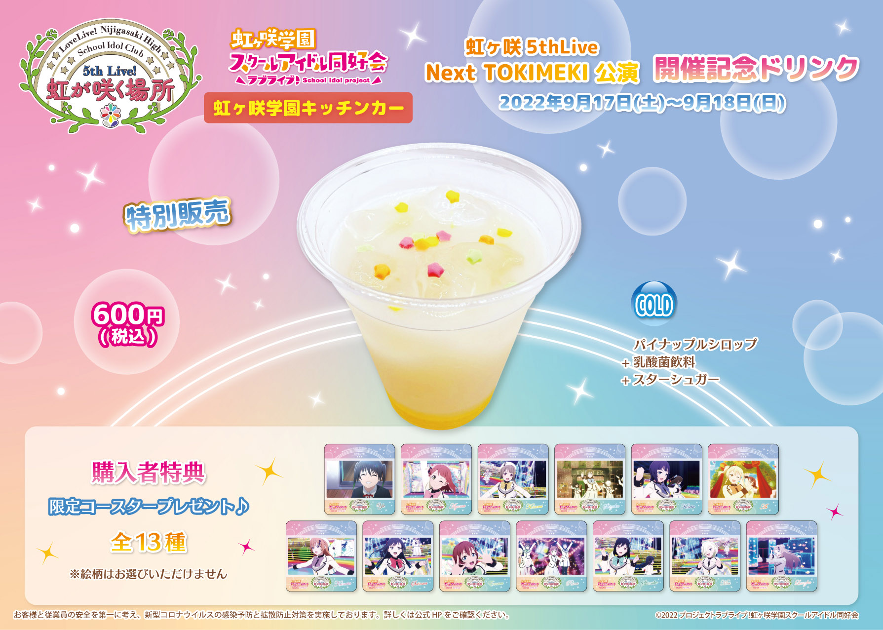 オリジナルドリンクをご注文の方は選べるオリジナルブロマイドをノベルティとしてプレゼント!前回からデザインも一新したノベルティも是非ゲットしてください!