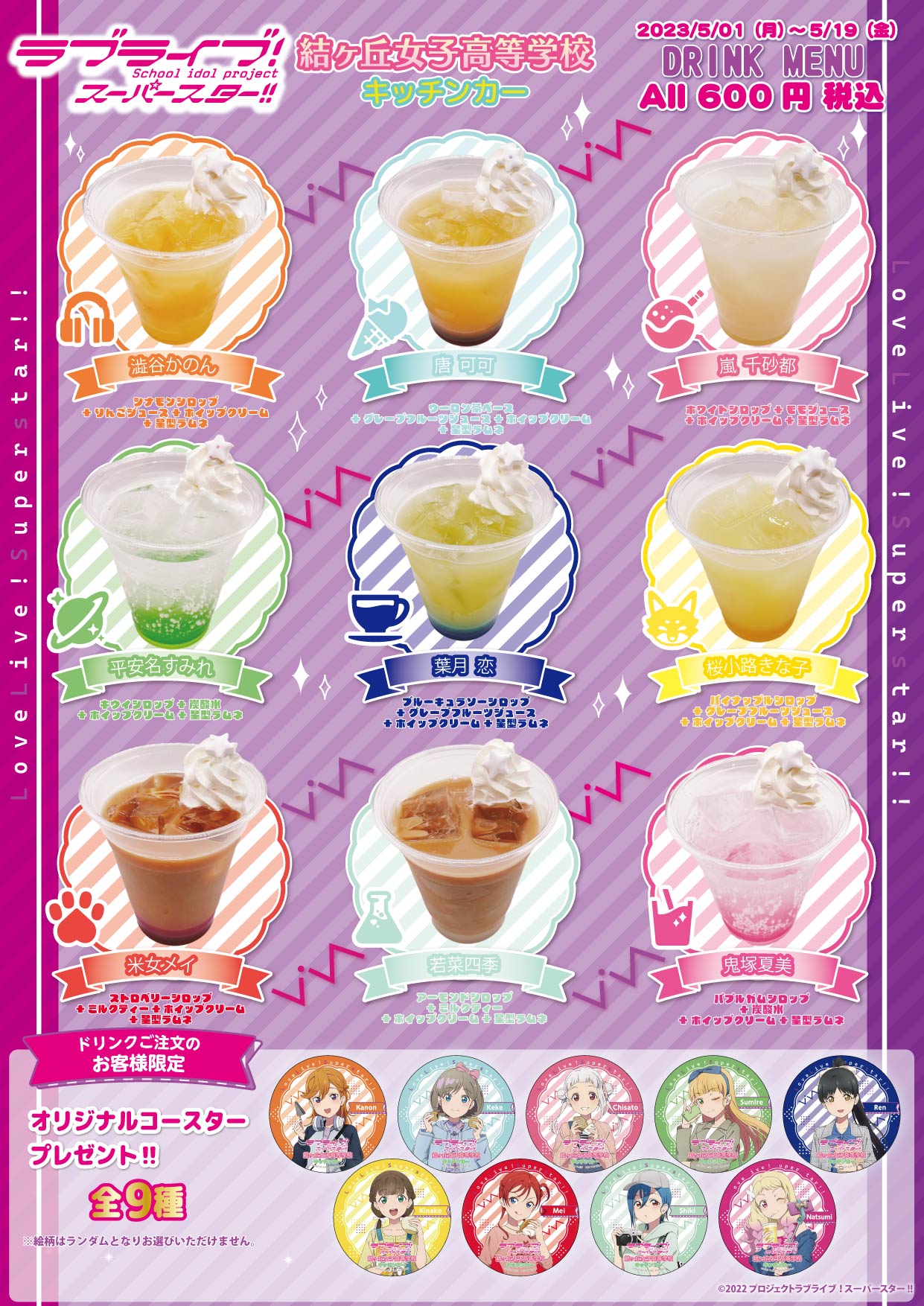 「ラブライブ!」「ラブライブ!蓮ノ空女学院スクールアイドルクラブ」は現地販売限定のステッカー付きです。