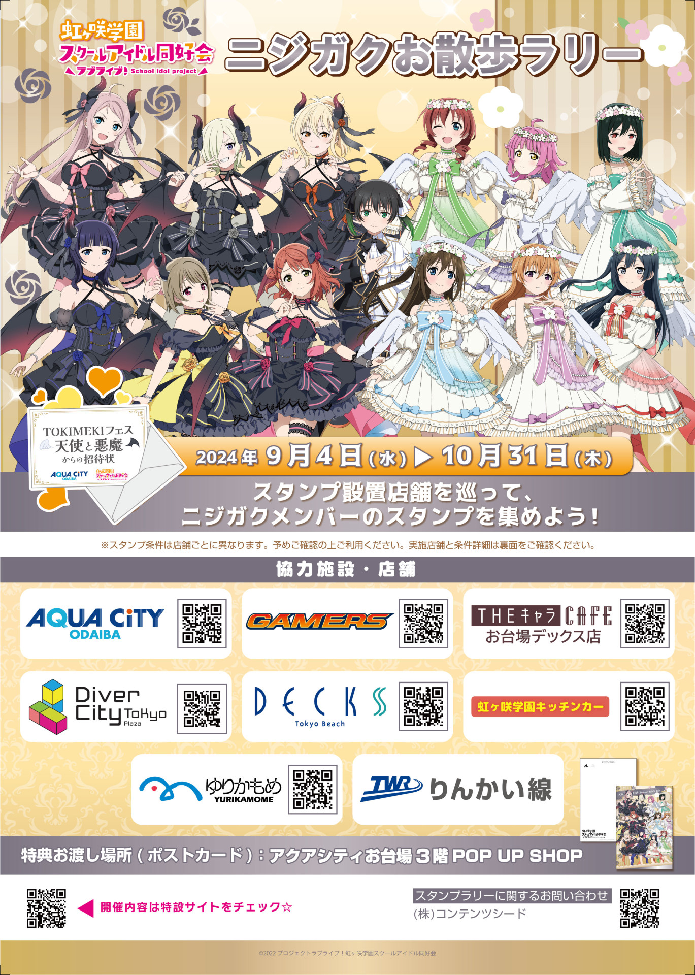 アクアシティお台場館内に天使と悪魔衣装のニジガクメンバーのスタンディーが登場!