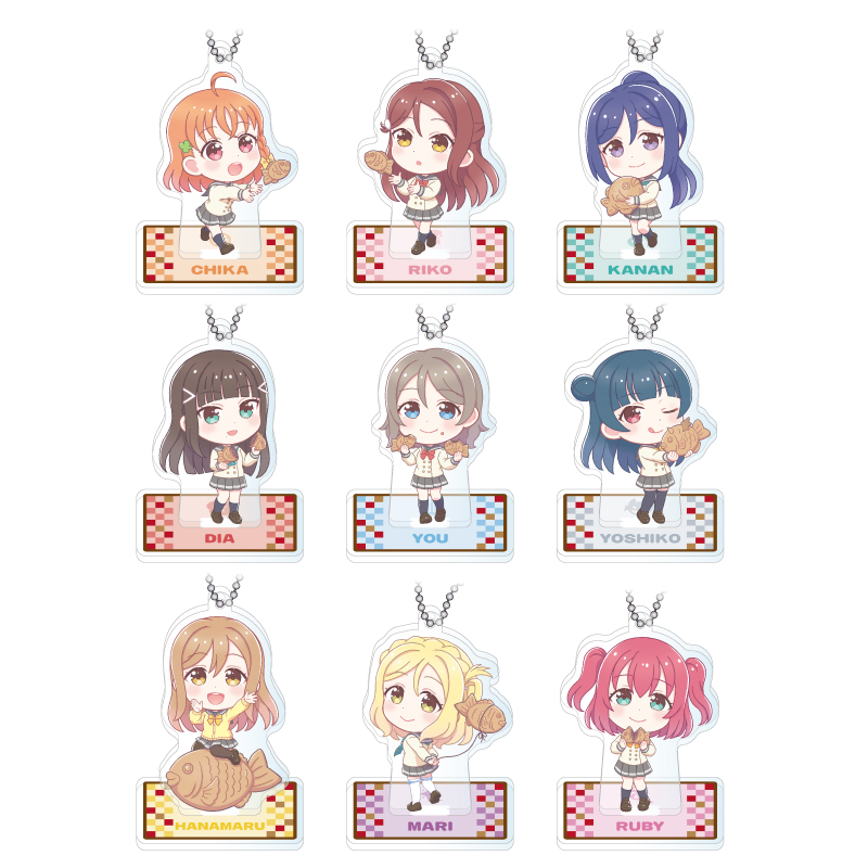 ・スタンド付きデフォルメアクリルキーホルダー(Aqoursたい焼き) (全9種・ランダム) 770円(税込)