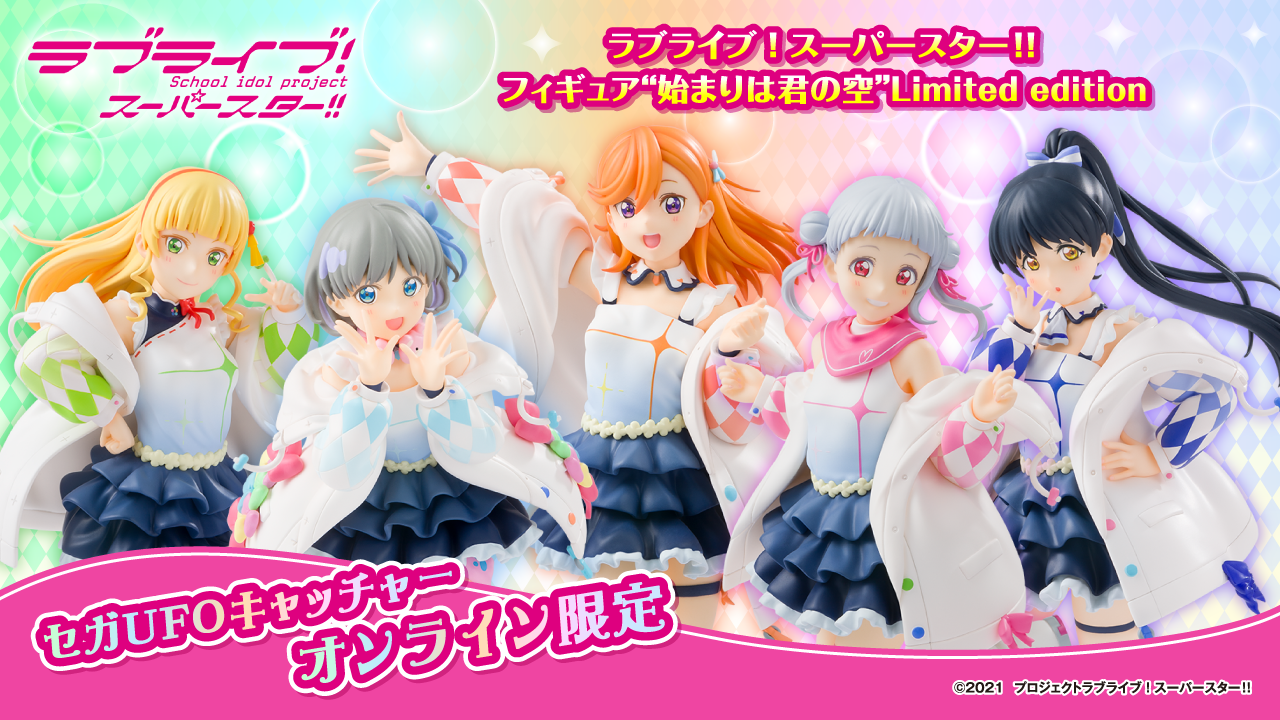 「ラブライブ!スーパースター!!」から「Liella!」のデビューシングル「始まりは君の空」の衣装を着た5人の特別仕様フィギュアがセガのオンラインクレーン限定景品として登場!