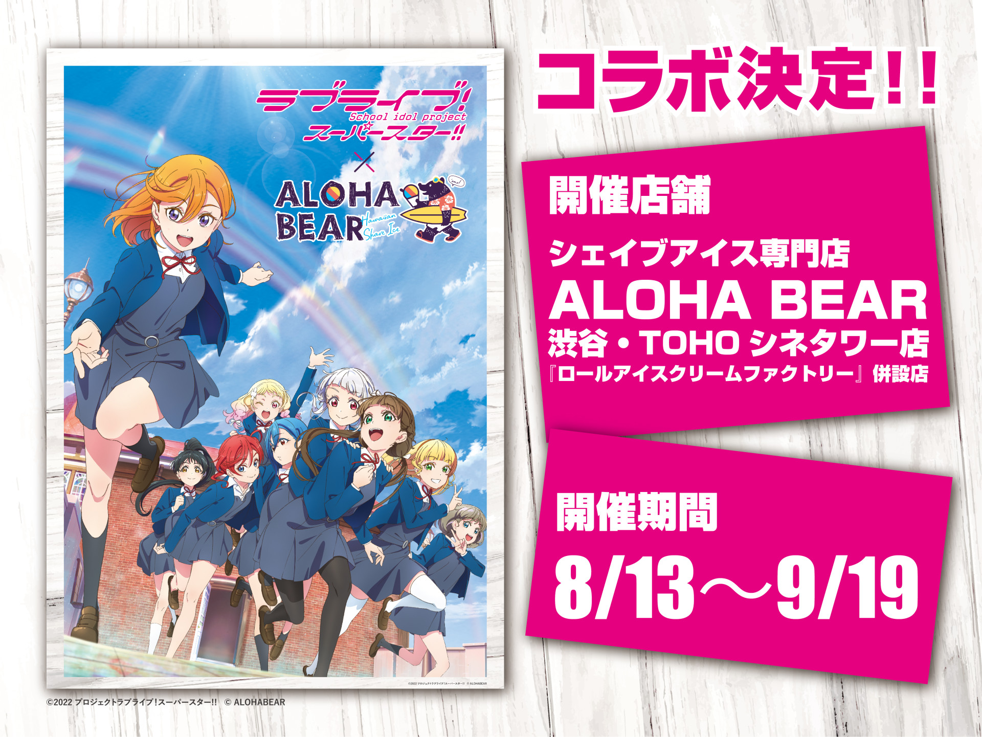 シェイブアイス専門店「ALOHA BEAR」より、 ラブライブ!スーパースター!!とのコラボ決定のお知らせ!