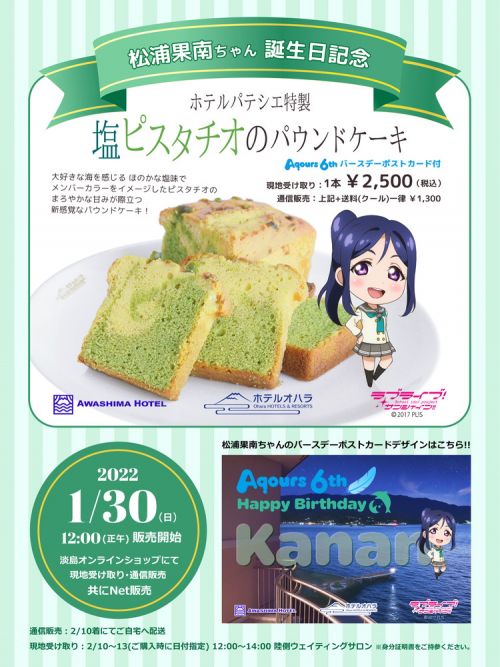 淡島ホテルから松浦果南誕生日記念、 オリジナルパウンドケーキのオンライン販売!
